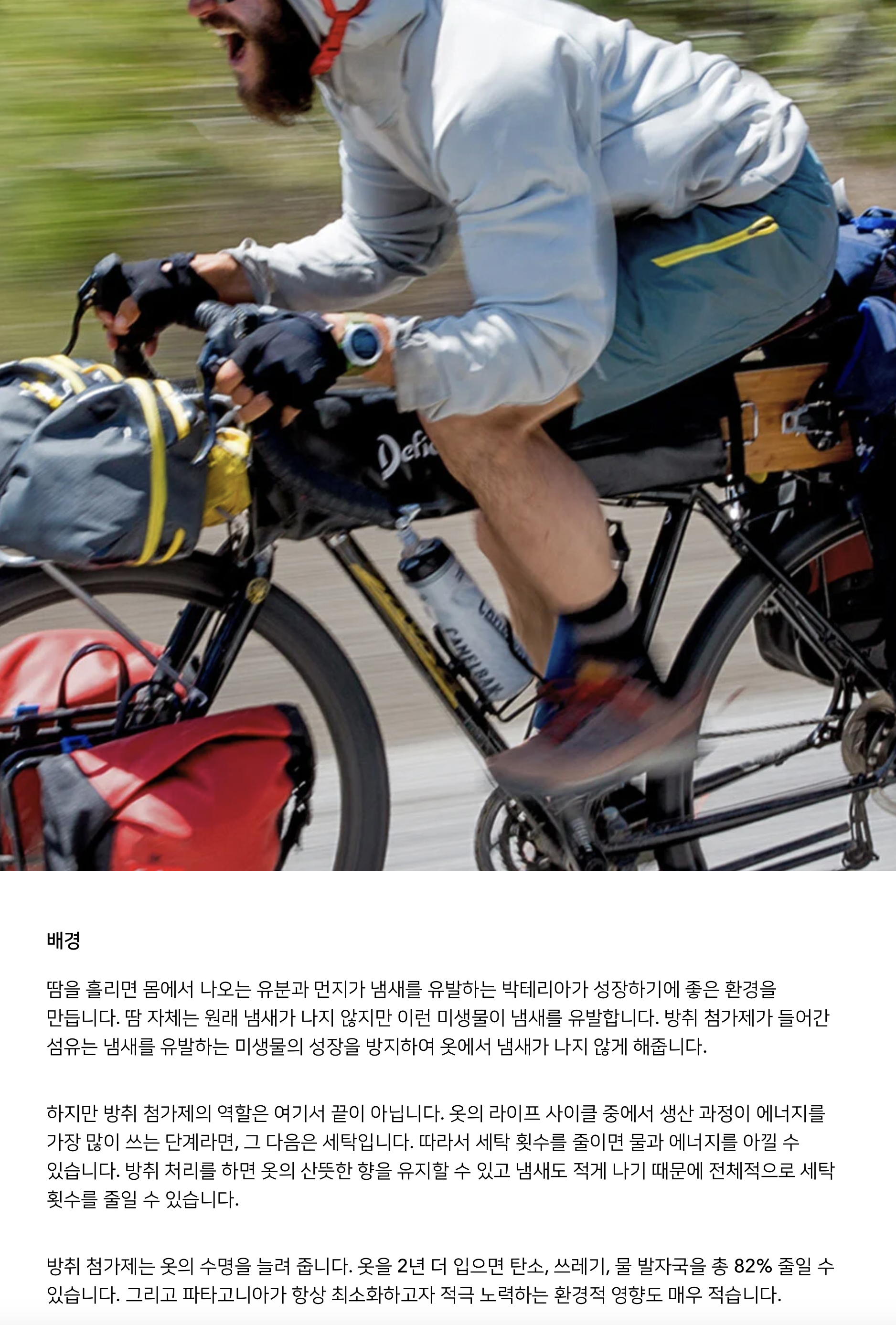파타고니아 공식 홈페이지에 보면, 이 옷을 왜 오래 입을 수 있는지에 대한 설명이 나와있다. 유행에 맞춰 빠르게 옷을 만들고, 이후 관리는 나몰라라 하는 대부분의 의류 회사들과 차별화되는 부분. 심지어 방수처리를 위한 DWR설명을 보면 환경에 좋지 못한 선택을 본인들이 했고, 고치기 위해 노력 중이라는 문구가 있다. 한계를 인정하고 극복하려 노력 하는 모습이 인상적이다.