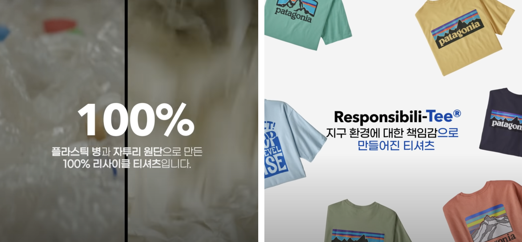 파타고니아하면 역시나 빠질 수 없는게 환경에 대한 책임감인데, P-6로고 티셔츠들은 그걸 가장 잘 보여주는 상징적인 아이템이다. 100% 리사이클 소재로만 만들어졌다. 티셔츠 라인별로 만들어지는 과정이나 사용되는 소재들이 다르다고 하는데, P-6 로고가 들어간 리스폰서빌리-티(귀엽다) 라인은 플라스틱병과 자투리 원단으로만 만들었다고 한다.